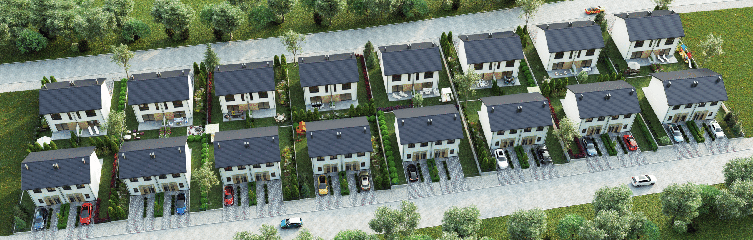Powierzchnia 72,99 m2 w otoczeniu zieleni. Kameralne osiedle z 16 domami.